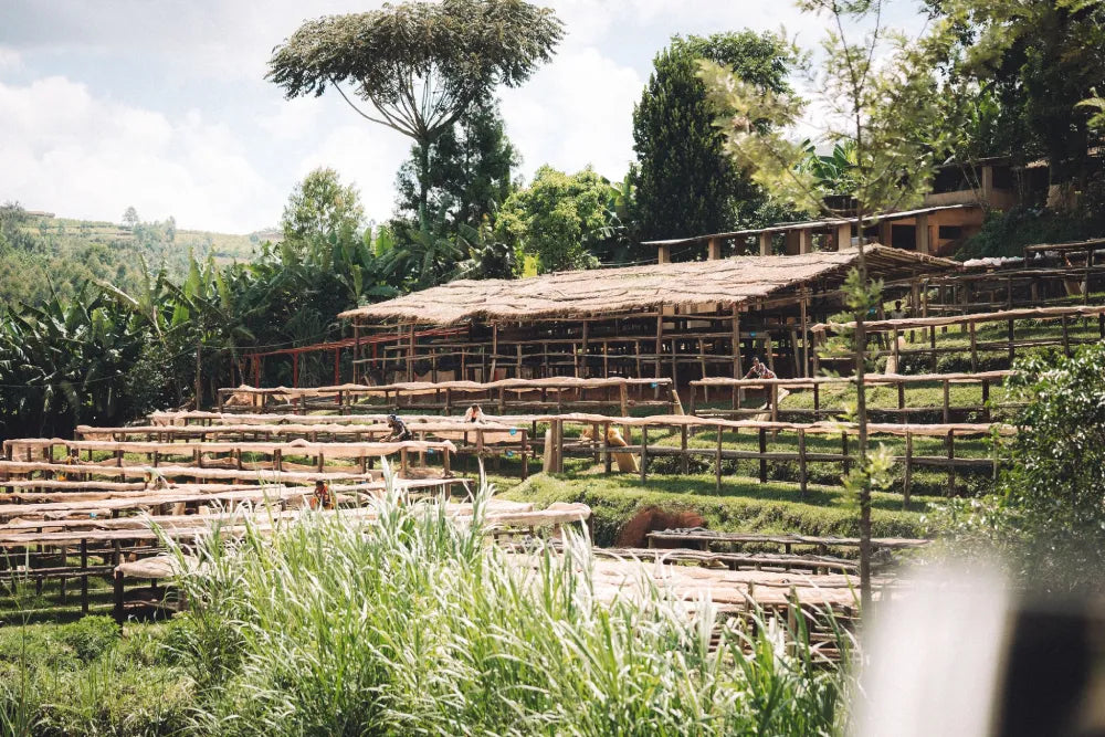 The washing station is situated at the foot of Gaharo Hill, and local farmers—many of whom helped clear the land and build the station—now deliver their cherries there.