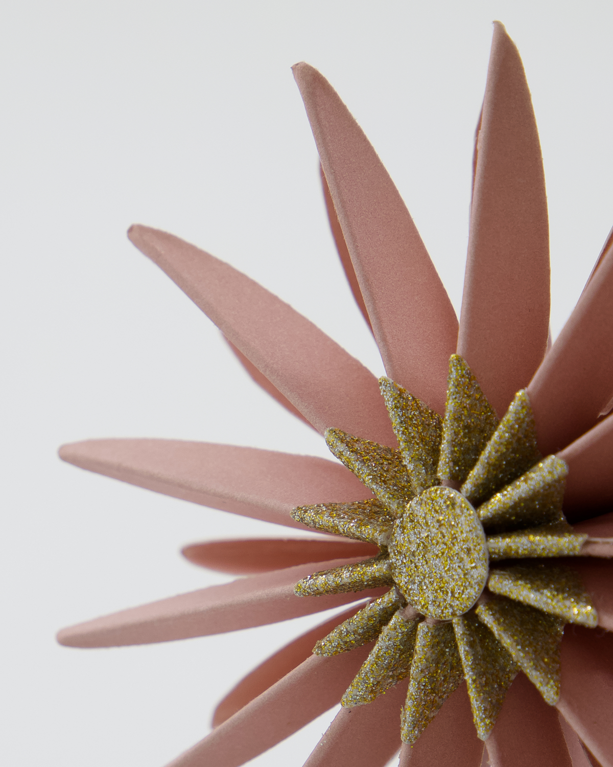 Transform your holiday décor with these exquisite handmade paper ornaments. The set comprises six pieces in two unique designs, showcasing rose-coloured floral shapes with a champagne glitter rosette at the centre. These ornaments bring a modern charm and feminine touch to your Christmas decorations.